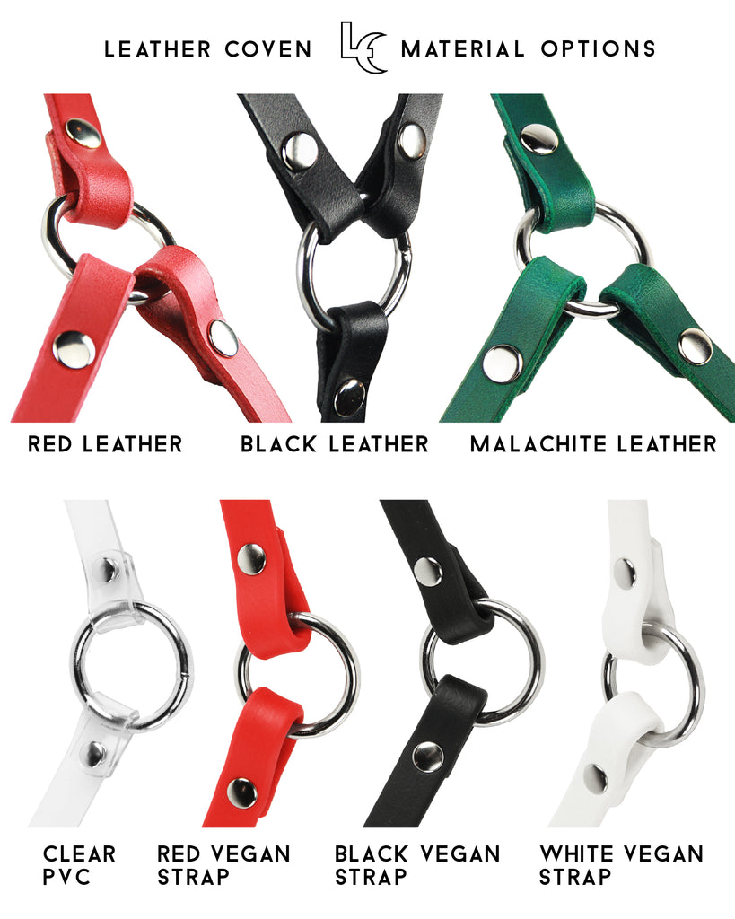 Available in supple, hand-finished bridle leather, clear PVC, or durable vegan strap.