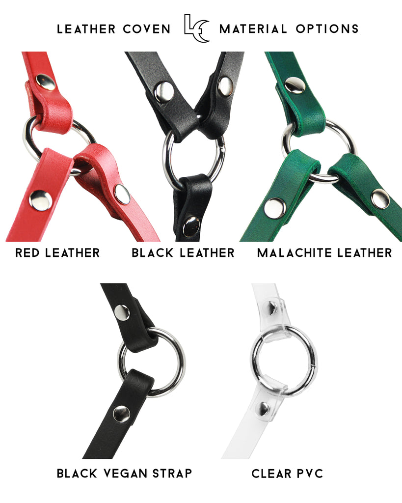 Available in supple, hand-finished bridle leather, clear PVC, or durable vegan strap.